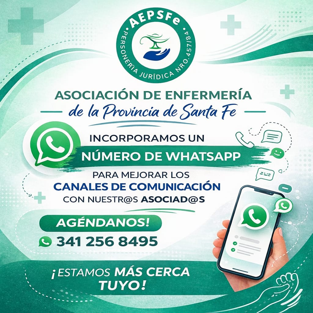 Con el objetivo de mejorar los canales de contacto y brindar un acceso más ágil a la información, desde el mes de marzo la Asociación de Enfermería incorporó una nueva línea de WhatsApp Business destinada a sus socios y socias.